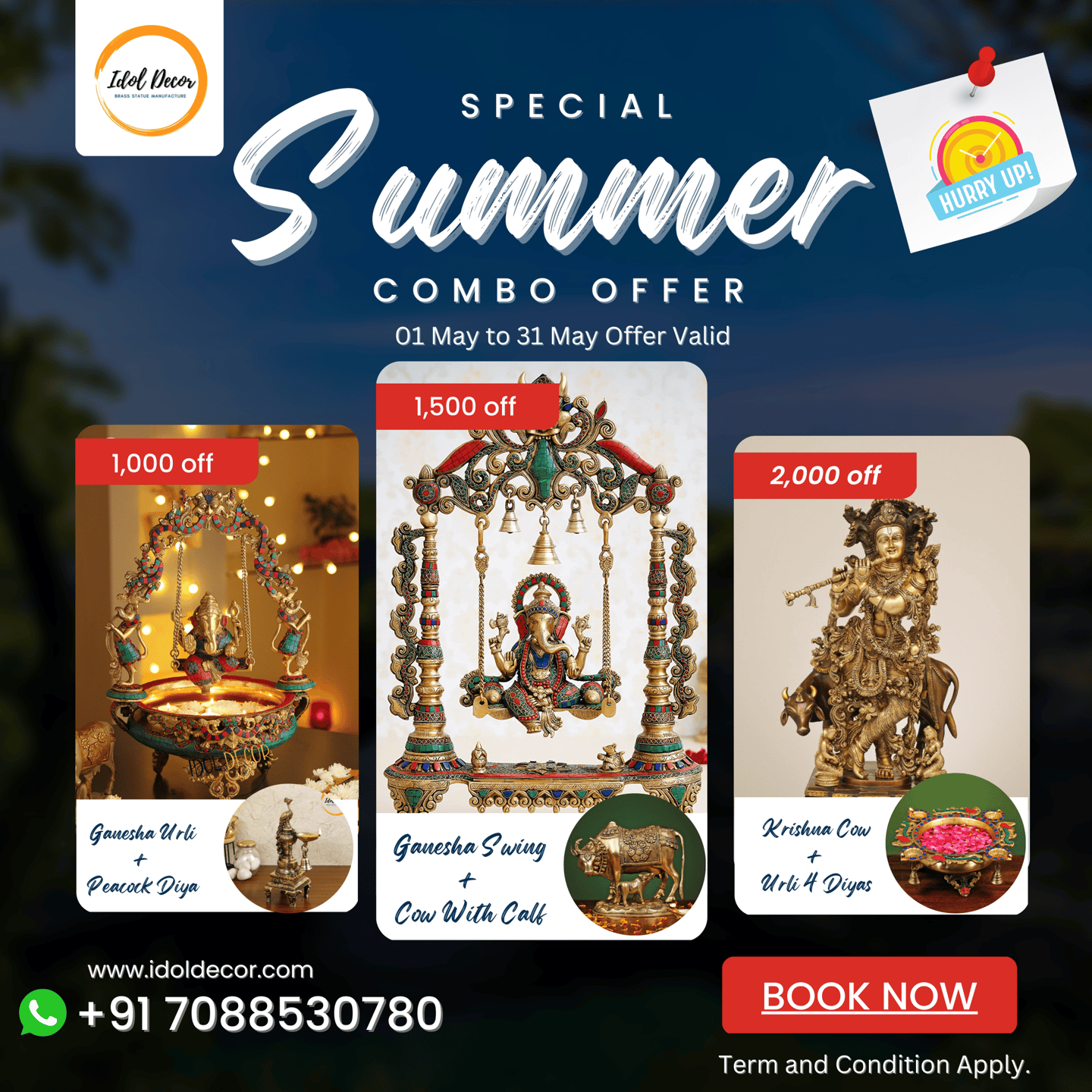 IDOL DECOR has brought a huge offer. You can get of products at a huge discount. Buy your favorite product and get discount. We try to decorate the dreams of the customer in brass idol .